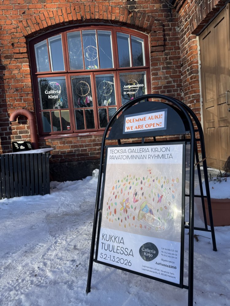 Torstaina 5.2. juhlistettiin Kukkia tuulessa -ryhmänäyttelyn avajaisia Autismisäätiön Galleria Kirjossa. Paikalle saapui runsaasti taiteen ystäviä ja galleria täyttyi lämpimästä ja välittävästä tunnelmasta.