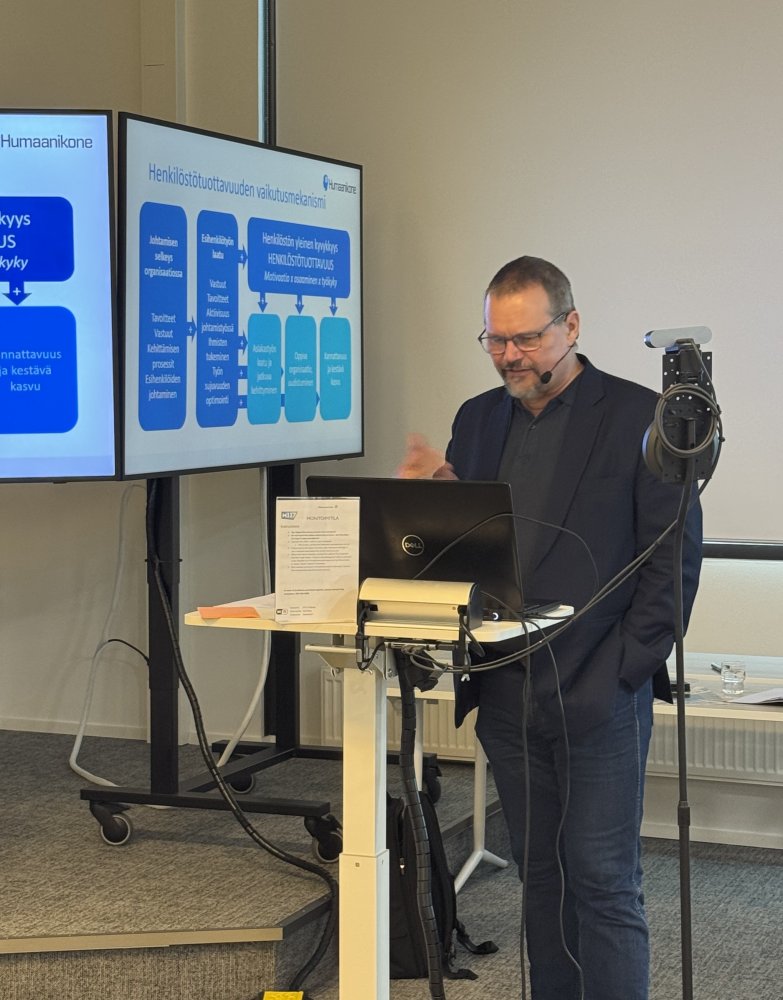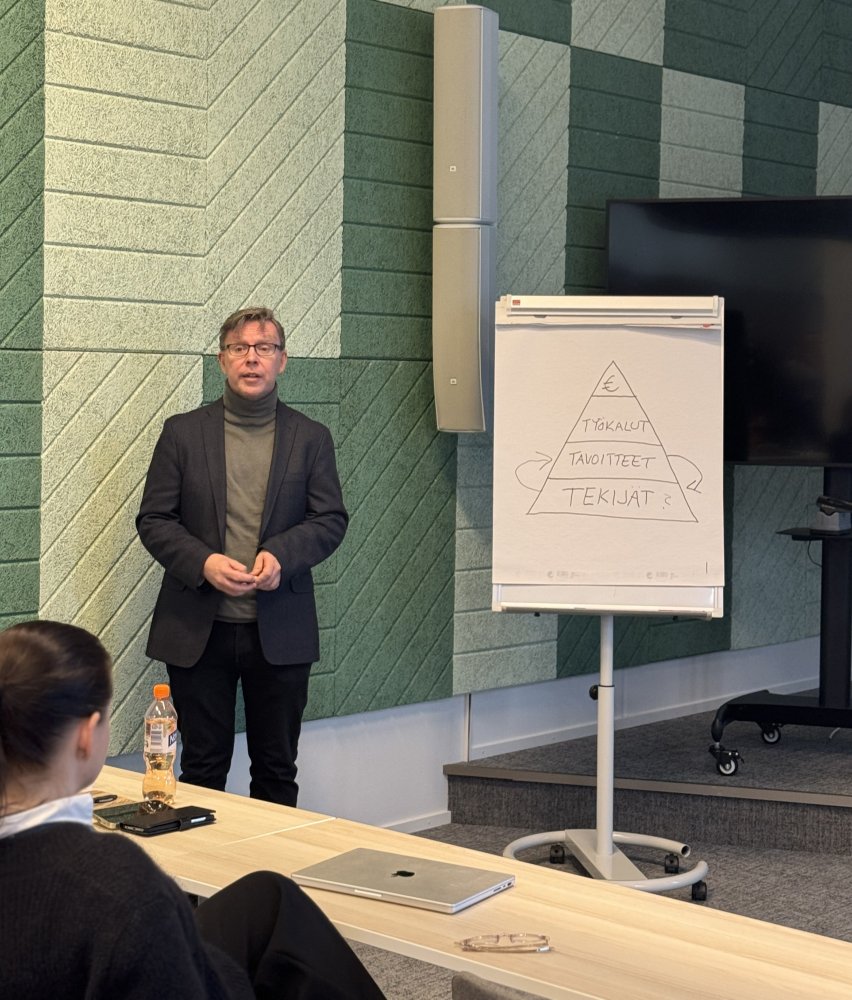 Työpajassa ei keskitytty vain tuloksiin, vaan myös siihen, mitä ne tarkoittavat käytännössä. Valmentaja ja työyhteisökehittäjä Jalmari Eklund nosti esiin motivaation keskeisen roolin työn sujuvuudessa.