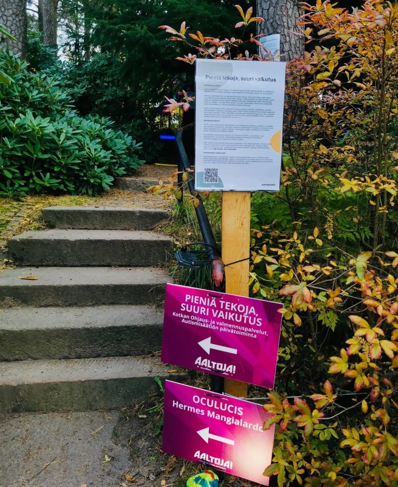 Autismisäätiön Kotkan ohjaus- ja valmennuspalveluiden päivätoiminta osallistui Aaltoja! Valoa ja ääntä Kotkassa -festivaaleille 15.–18.10. teoksella Pieniä tekoja, suuri vaikutus.